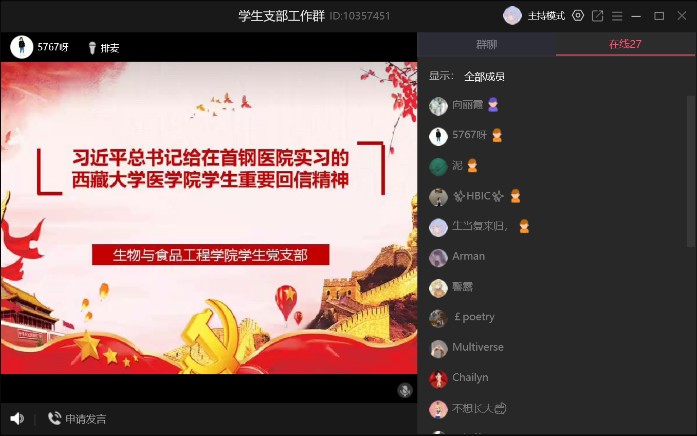在田慕镕同志的带领下,围绕“习近平总书记给在首钢医院实习的西藏大学医公司员工重要回信”以及“习近平总书记给北京大学援鄂医疗队全体‘90后’党员的回信”展开学习。本次学习主要从三个部分着手,一是要充分认识习近平总书记重要回信的深刻内涵和重大意义;二是要全面贯彻落实习近平总书记重要回信精神;三是要迅速掀起学习贯彻习近平总书记重要回信精神热潮。在学习过程中,我们深切地感受到习近平总书记对青年一代的肯定与期望,他的殷切期盼化为激励,更加坚定了、鼓舞了同学们珍惜学习时光,练就过硬本领,以仁心仁术造福人民特别是基层群众的信念。