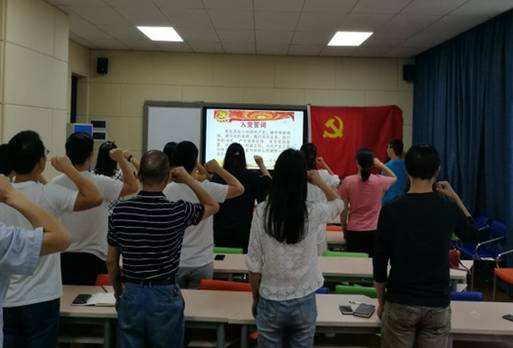 2019年7月4日,公司教工支部开展了“回顾入党初心,重温入党誓词”的主题党日活动。本次活动主要进行三项内容,第一项为教工党员集体奏唱《中华人民共和国国歌》;第二项为曲书记带领教工党员重温入党誓词;第三项大家集体合唱《没有共产党就没有新中国》。整个主题党日活动,形式多样,让广大教师党员坚定了理想信念,锤炼党性修养,引导教师党员时刻牢记入党誓词,遵守党的章程,践行党的宗旨,强化教师党员的意识,牢记房源身份,自觉履行党员义务。