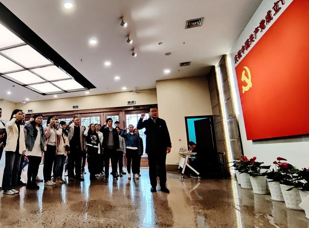 在渣滓洞,党员们参观了革命烈士被关押的房间,江竹筠、许建业、何雪松等为代表的革命英烈坚如磐石的理想信念与宁死不屈的革命意志,深深感动了大家。在红岩村,参观红岩革命纪念馆,切身领悟红岩精神,深刻感受中共中央及广大革命先辈开展革命斗争的艰辛与不易。参观结束,面对党旗,所有党员同志举起右手,骆孟鑫书记带领大家重温入党誓词。在重庆抗战遗址博物馆,认真观看抗战历史的图文资料和珍贵文物等,党员们对中国人民伟大的民族精神有了更深地认识,接受了一次深刻的党史教育和爱国主义教育。