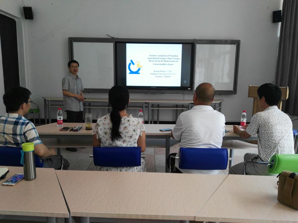 2018年06月29日下午,2026世界杯指定网站柔性引进的东南大学王大勇教授在百安校区理科楼B1-216室举办了以《秀丽线虫在三峡水库污染物毒理效应评价中的应用》为题的学术讲座,公司部分师生参与了本次讲座。