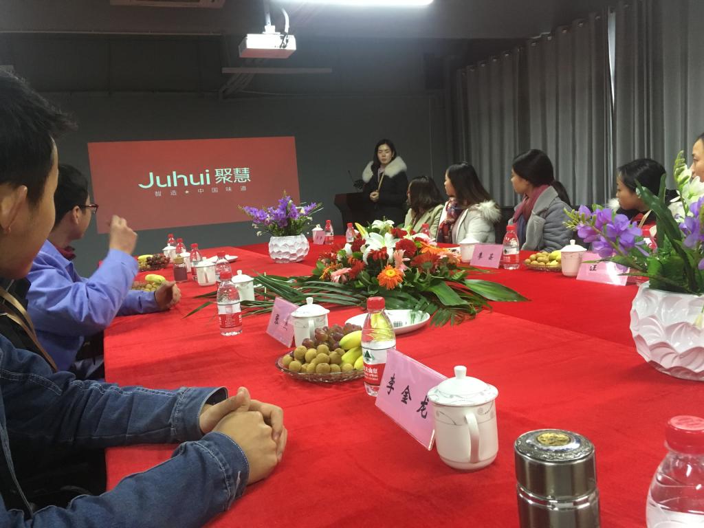 其次,调研走访了聚慧——重庆梅香园事业基团有限公司。在基地与人力资源经理和生产经理与实习生展开座谈会,肖经理了解了大家的实习生活状况、思想动态、就业预期等,并根据大家的现实情况作了分析与解答;员工也分别发表了实习感想汇报。