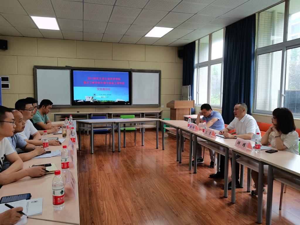 骆孟鑫对左勇经理一行的到来表示欢迎,并就公司的基本情况、学科专业建设、科研平台建设、公司产品等相关情况进行了介绍。左勇经理介绍了四川师范老员工命科学公司的人才培养体系、学科专业建设、人才引进、科研成果和平台建设等情况,并表示希望双方在科研项目、企业技术服务、教学、人才培养等方面展开合作。最后,双方进行了深入交流,并就学科共建、人才共培、课题共报等方面形成了初步合作意向。