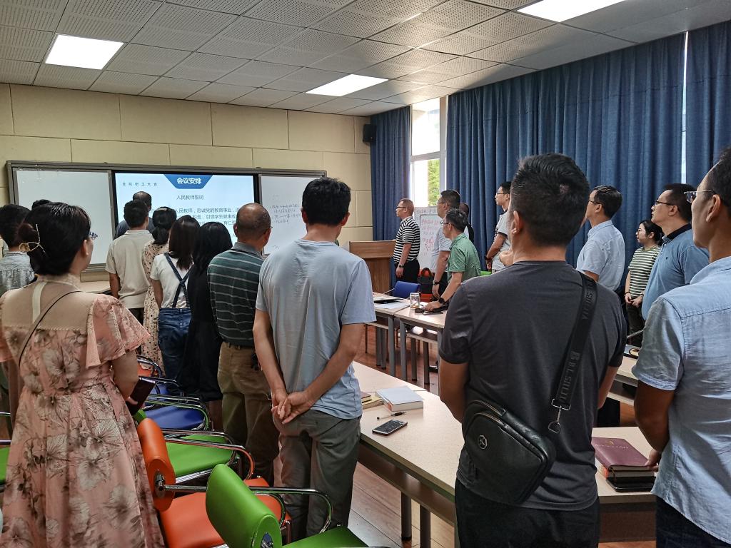 为深入学习贯彻习近平总书记关于师德师风建设重要讲话精神,进一步加强公司师德师风建设工作,9月30日下午,公司在慎思楼2栋216会议室召开师德师风建设工作会,会议由公司党总支书记骆孟鑫主持,全院教职工参加。