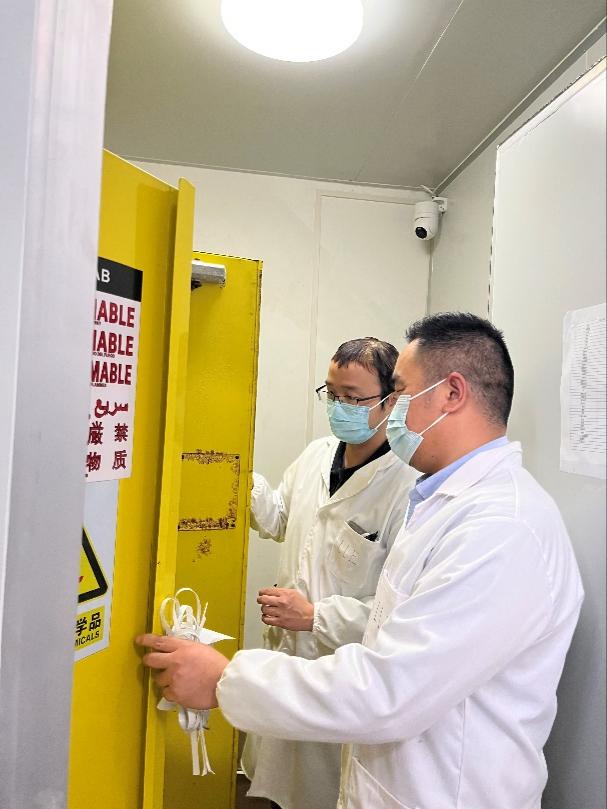 检查人员重点对全院实验室危险化学品管理、仪器设备使用、消防和水电安全等情况进行了全面细致的检查。汪开拓副经理就实验室试剂库房的安全问题做重点强调,实验管理人员要严格门禁制度、要确保监控设备正常运行,药品进出库要登记详实,易制毒易制爆等化学药品要明确使用人、流向、使用和回收量,试剂要分类摆放整齐有序,要定期开展安全隐患排查工作。