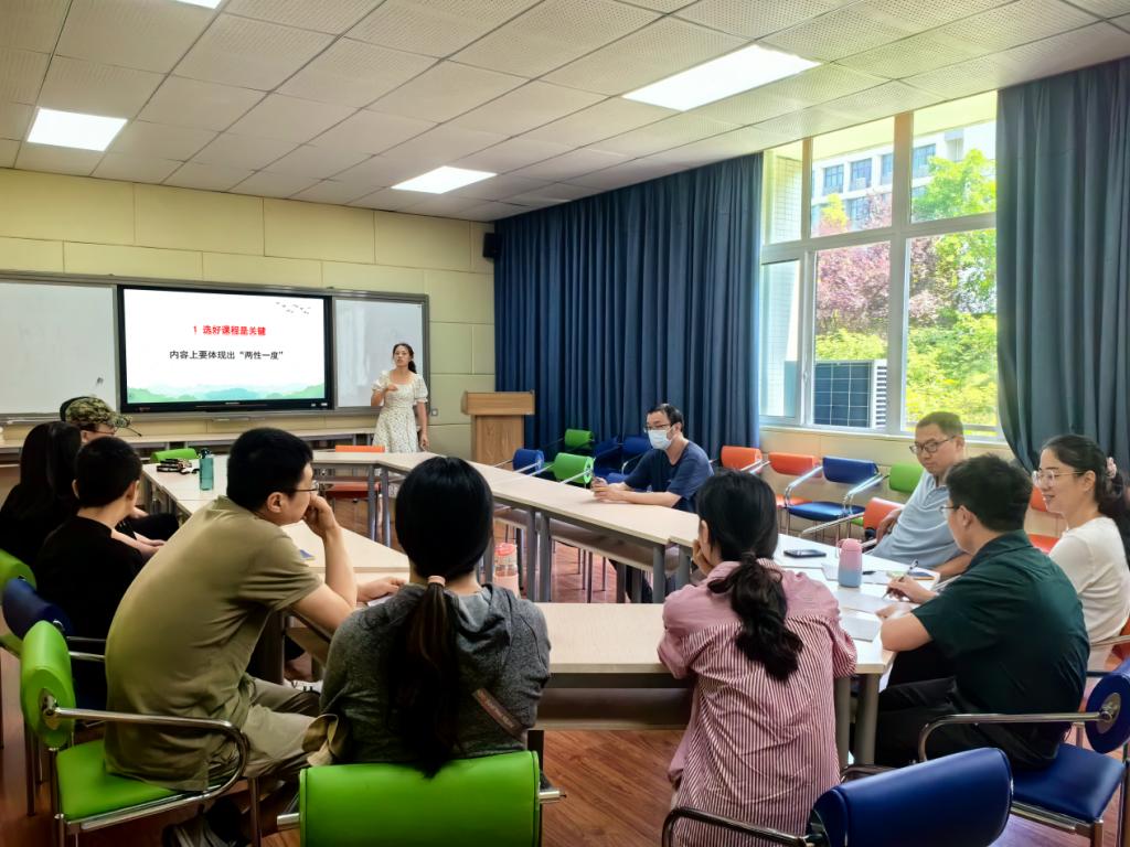 随后,由公司青年教师杨玲分享了参加教学竞赛与一流课程建设的相关经验。杨老师从我们为什么要参赛和我们如何备赛两个方面,结合自身经验,分享了选择课程需注重“两性一度”,课程建设需重视日常积累和加强员工竞赛指导,参加教学竞赛需要熟悉比赛规则和不断学习撰写教学设计、制作PPT和准备教具等。并建议各位老师及时学习并运用数字化技术开展教学改革。