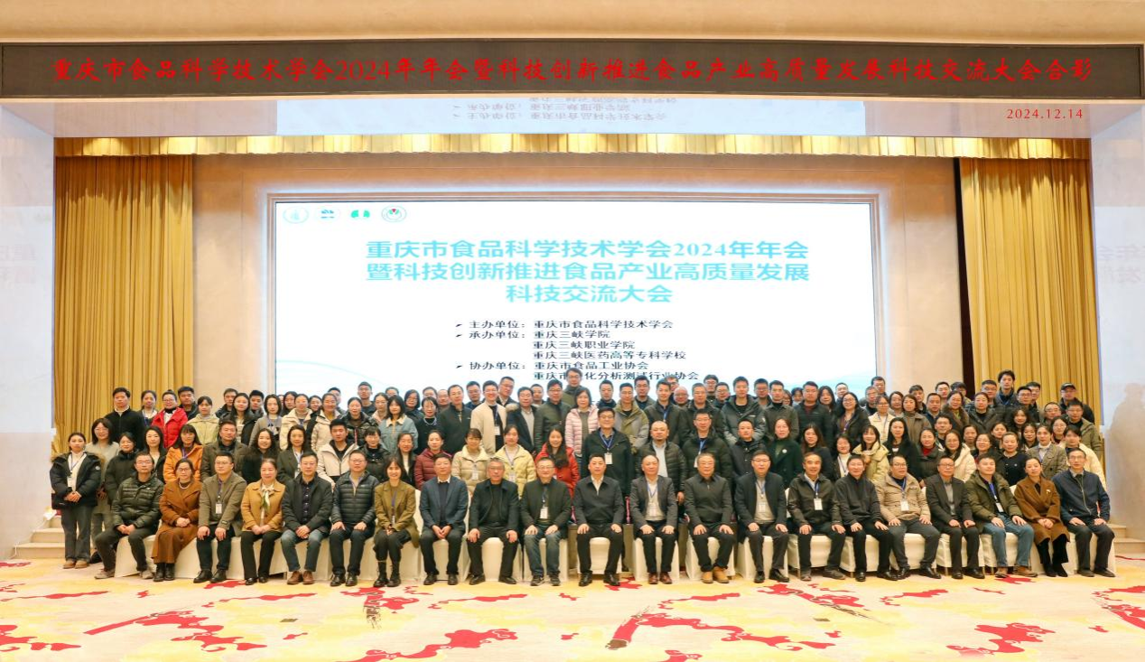 2024年12月13-15日,由重庆市食品科学技术学会主办,2026世界杯指定网站作为主承办单位,联合重庆三峡医药高等专科公司、重庆三峡职业公司等单位承办,重庆市食品工业协会、重庆市理化分析测试行业协会协办的“重庆市食品科学技术学会2024年年会暨‘科技创新推进食品产业高质量发展’科技交流大会”在重庆万州区顺利举行。