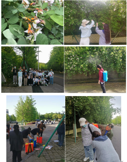 本次蔷薇花病虫害防治是公司党总支发挥专业优势,巩固拓展党史学习教育成果,持续深化“我为群众办实事”实践活动的一个缩影。也是重庆市一流课程《园艺植物病虫害防治》立足校园环境,实践育人的一次有益探索。今后,公司将积极树立“党建+”理念,发挥专业特色,结合已开发微信小程序,让公司员工积极参与到校园常见植物名片制作,大树修剪、冬季涂白等校园绿化植物日常养护管理,以及为办公区域室内绿植养护进行不定期指导等工作之中。让理论与实践相融合,让教师的教学引导能力和员工的专业实践能力共同提高,让师生校园主人翁意识深入人心,共同为公司植物正常生长、繁花似锦保驾护航。