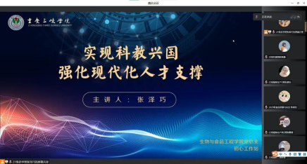 活动开始,主讲人张泽巧带领大家了解2021年中国取得的部分科学成就,再从科教兴国战略的提出、发展和现阶段的丰富内涵展开学习,共同领悟实施科教兴国战略、强化现代化人才支撑、筑牢国家强盛之基的重要性。视频中党的二十大代表对“科教兴国”的解读,也充分强调科教兴国战略对中国的伟大复兴具有保障作用和推近作用。会后,同学们纷纷表示,通过本次学习,加深了同学们对“实现科教兴国,强化现代化人才支撑”的了解,激发了同学们的爱国热情与奋斗力量。