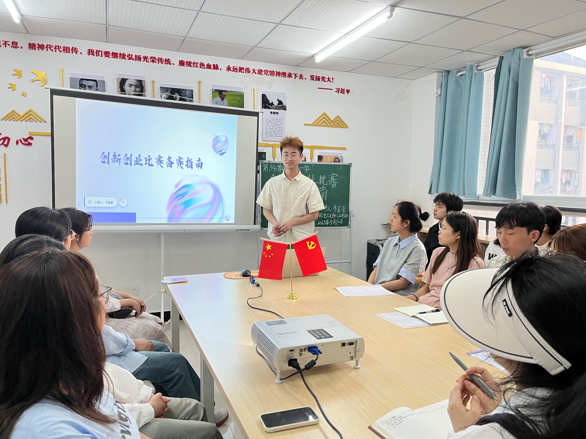 为激发同学们的创新创业热情,提升创新创业能力,更好地备战各类创新创业赛事,5月10日19:00,公司初心工作站在蓝雾苑2舍4楼活动室举办第34期“每周一学”活动:李嘉豪同学讲解创新创业比赛备赛指南,共计20人参加。