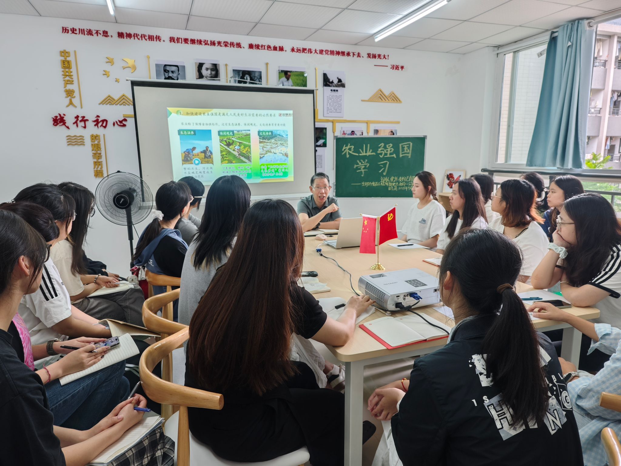 为推动同学们将课堂理论知识与农业强国战略深度衔接,进一步激发青年学子投身农业农村现代化建设的责任感与使命感,9月25日14:30,公司初心工作站在蓝雾苑2舍4楼活动室开展了以“农业强国”为主题的“寝室工作日”活动,共计20人参加。