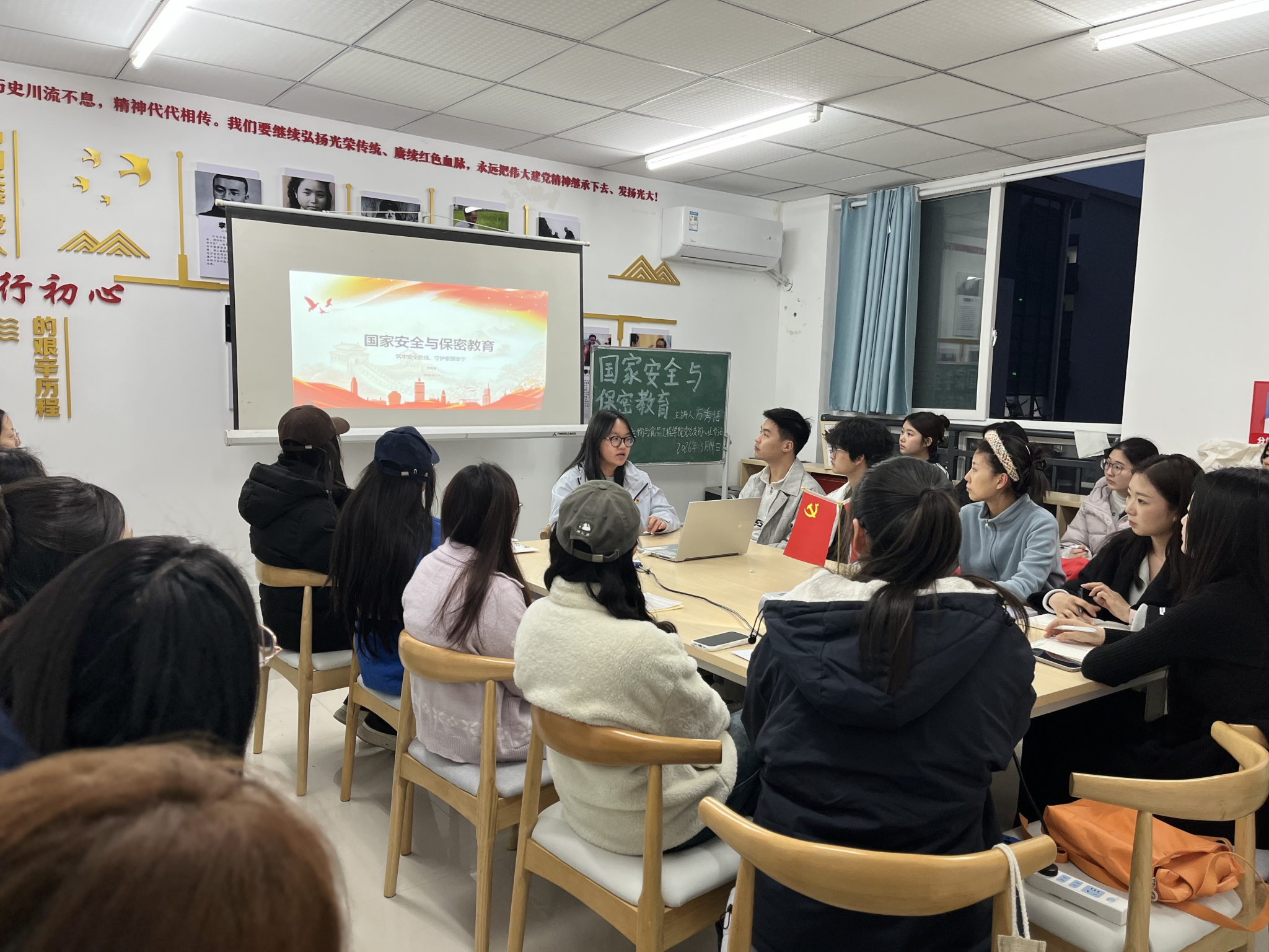 3月14日19:00,公司初心工作站在蓝雾苑2舍4楼活动室开展第46期“每周一学”活动。万秀语同学围绕国家安全与保密教育作专题宣讲,共有22名员工参加。
