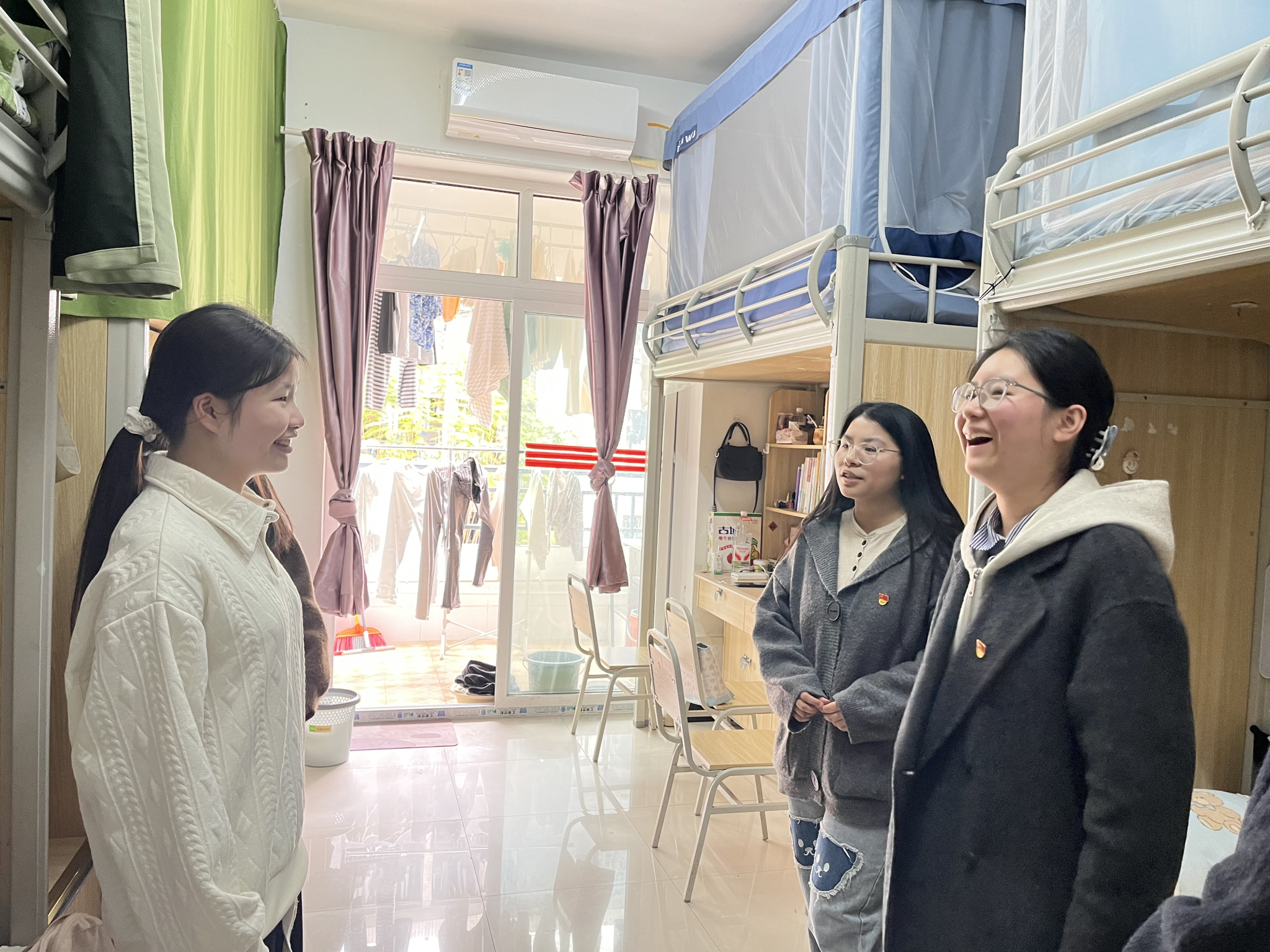 本次参与进寝的员工党员为周琴(女,员工第二党支部)、吴云露(女,员工第二党支部)、李洪琳(女,员工第一党支部)。在工作人员的组织下,党员同志深入寝室,向同学们讲解党的理论知识及入党基本流程,鼓励大家积极向党组织靠拢;并以朋辈身份展开面对面交流,针对学业规划、考研备考、生活困惑等话题予以解答,勉励同学们在大学阶段勇于尝试、实现自我提升。