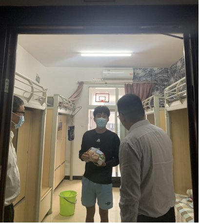 9月22日上午,公司党总支书记骆孟鑫、副书记陈文剑带领辅导员李华林、龚莉、周烨伟深入员工寝室,向健康观察员工送去了慰问和关怀。