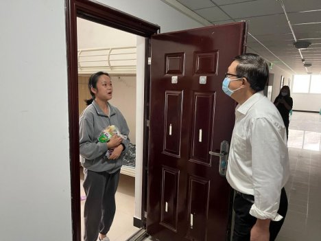 自员工入住健康观察室以来,公司密切关注健康观察员工的学习、生活以及身心健康情况。走访过程中,公司领导与同学们亲切交流,详细询问同学们的生活和学习安排,鼓励同学们克服困难、上好网课,对同学们理解和支持公司疫情防控工作表示肯定与感谢。对于刚报到的15名2022级新生,骆孟鑫亲切关怀他们的生活情况,询问新环境适应情况,同学们纷纷表示能够适应新环境,真切感谢公司的亲情与温暖,定会积极服从健康观察要求和统一安排。