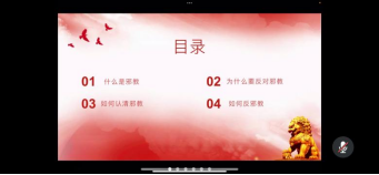 各辅导员在周末教育中对防范邪教进行专题讲述,为同学们科普反邪教知识。团总支员工会开展了“喜迎二十大、防范邪教保平安”主题会议,员工会主席团成员陈世强倡导公司全体团学骨干积极学习、崇尚科学,坚决抵制邪教。各班班长组织同学召开反邪教主题班会,为同学们讲解了“什么是邪教”、“为什么要反对邪教”、“如何认清邪教”、“如何反对邪教”四大方面的知识,鼓励同学们用理性对待邪教,宣扬科学。