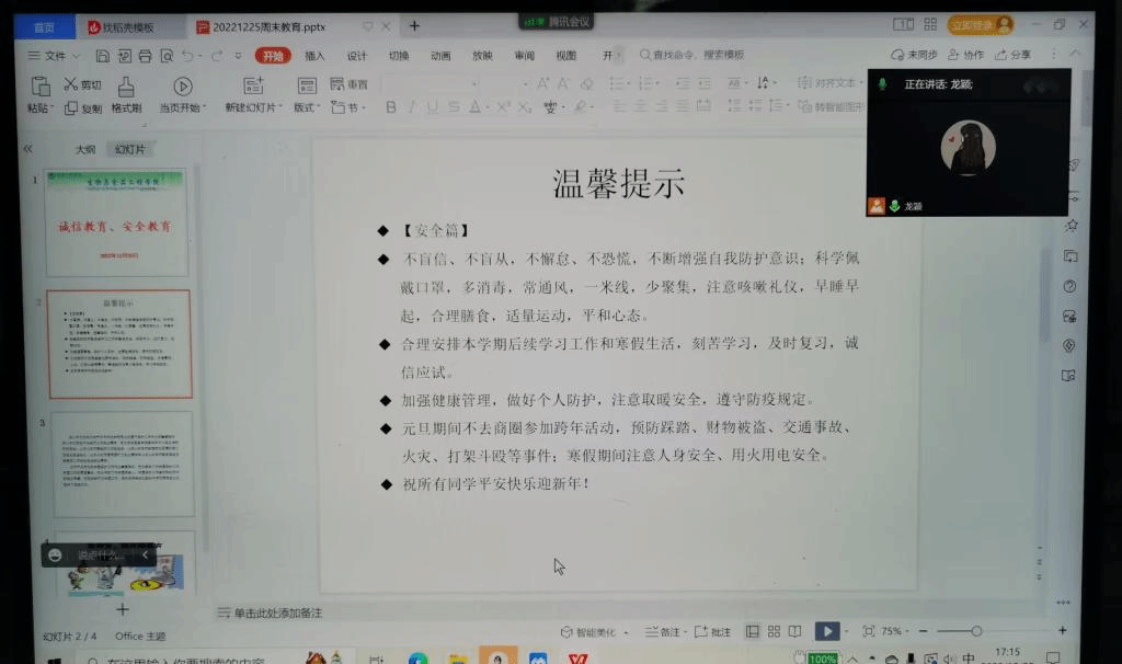 12月25日下午,公司辅导员分年级开展线上诚信教育、安全教育专题周末教育,公司全体员工参加。