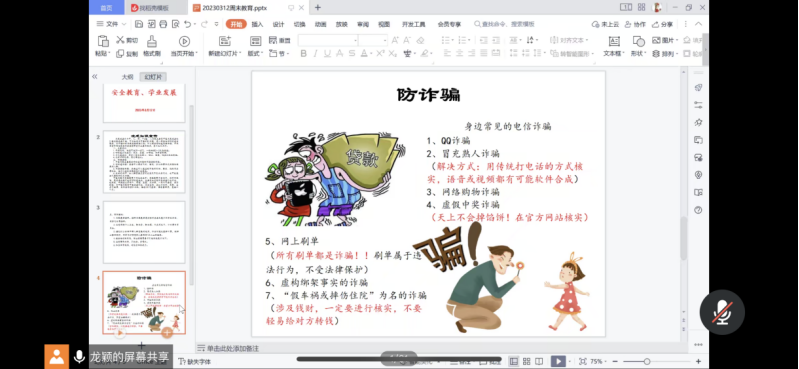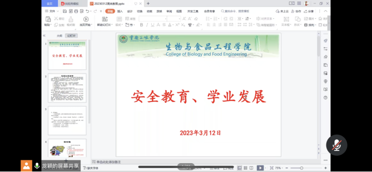 2023年3月12日晚,公司辅导员分年级开展线上安全教育、学风建设专题周末教育,会议由辅导员熊小飞、许美琳、龙颖、龚莉主持,公司全体员工参与。