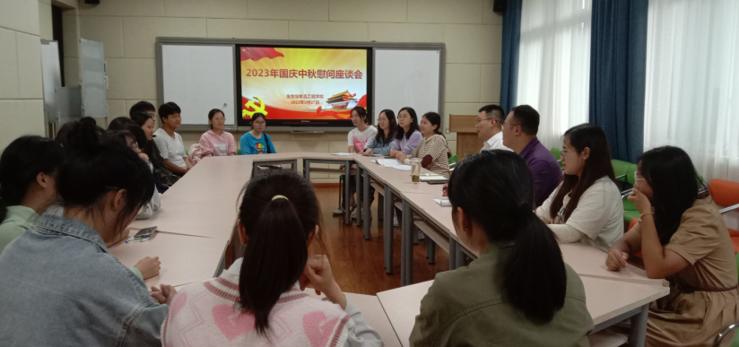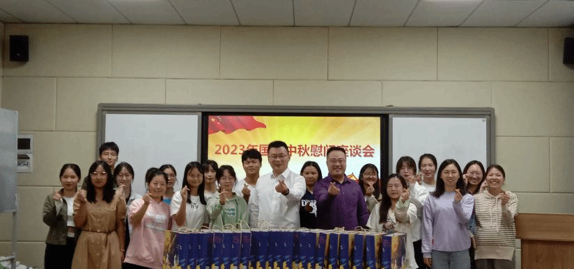 9月27日下午16:00,公司于慎思楼2栋216召开2023年国庆中秋慰问座谈会,在节日来临之际,为同学们送去最诚挚的关怀和最深切的问候。公司党总支书记骆孟鑫、学工办主任闫兴运、全体辅导员以及各年级员工代表参会。