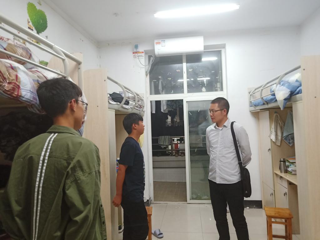 9月23日19:30,公司学工办副主任李华林,辅导员向丽霞、蒋园园、陈华华深入19级新生寝室,了解新生们的近况,为他们带去温暖与关怀。