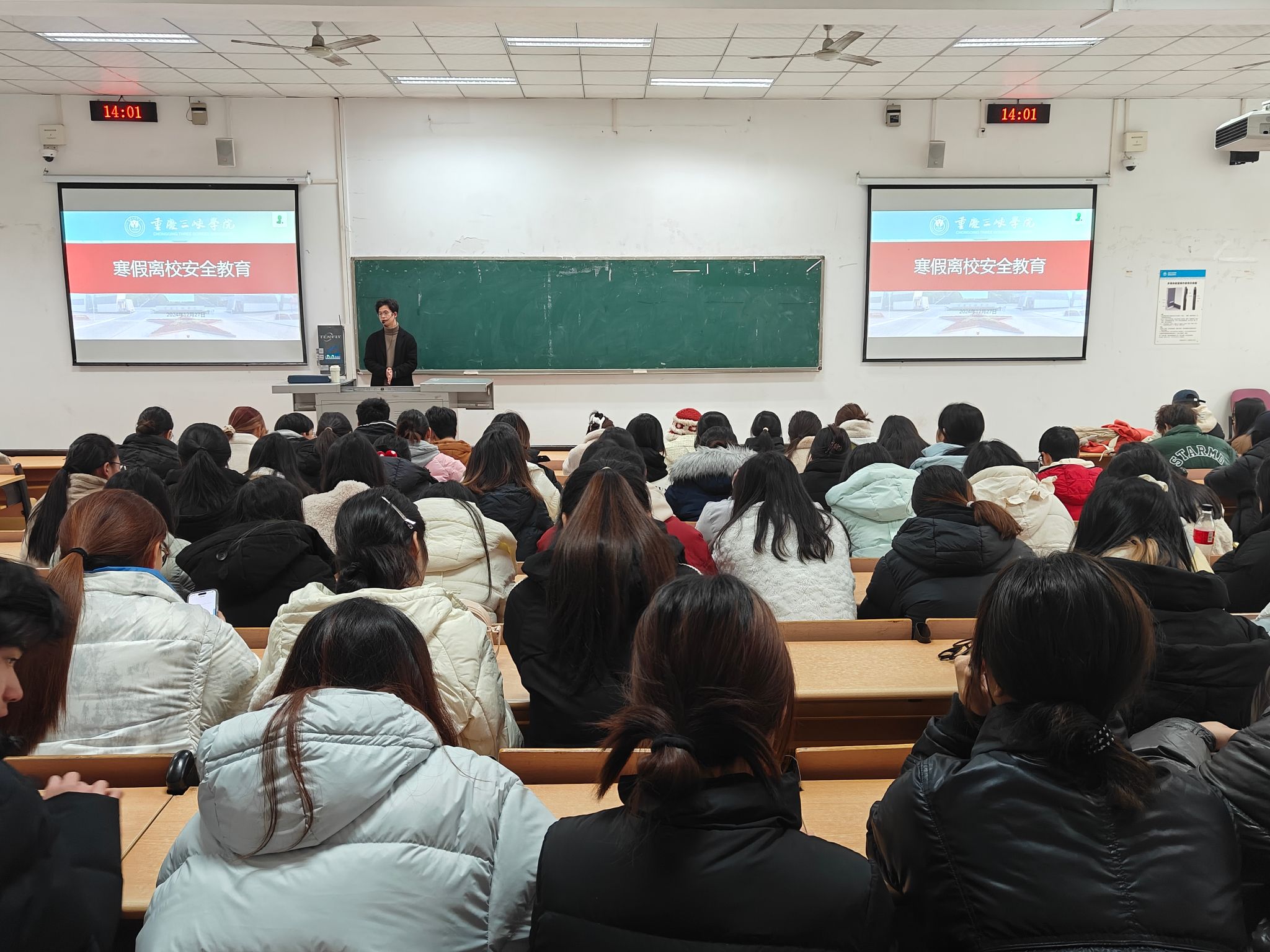会上,辅导员开展了寒假离校安全教育,引导同学们注意寒假离校和返校途中的交通安全,提醒同学们离校的时候关闭好宿舍水电门窗,通过案例讲解,强调寒假在家要注意交通安全,预防冬季火灾和一氧化碳中毒,减少去往人群密集场所,确保个人安全,提醒同学们谨防机票退改签诈骗、兼职招聘诈骗等电信网络诈骗。辅导员还开展了诚信考试教育,引导同学们认真复习、诚信考试;提醒同学们及时购买老员工医保,保障个人权益。