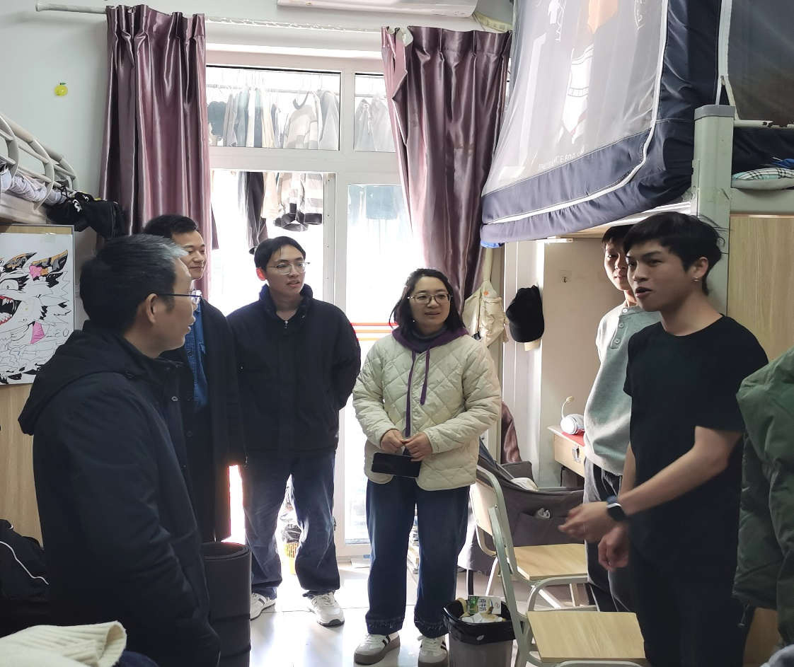 为切实关心员工成长,深入了解在校员工的思想动态与生活状况,营造安全、文明、和谐的校园环境,2025年11月21日,公司党总支书记肖国生、党总支副书记黎涵带领全体学工人员深入员工宿舍开展走访工作,细致了解员工动态,全面排查安全隐患。