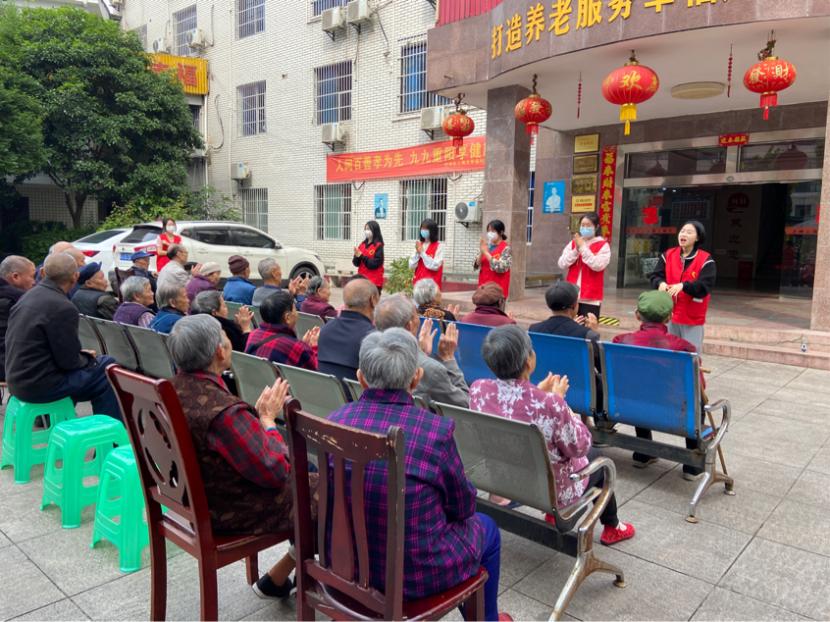 活动开始,志愿者们分组打扫卫生、与老人们聊天。之后,志愿者为老人们朗读自己写的信。紧接着,开展健康操教学和合唱表演“唱支山歌给党听”、“我和我的祖国”,志愿者积极耐心教导,老人们认真学习。活动最后,志愿者们送上为老人们准备的礼物和祝福语,并合影留恋。