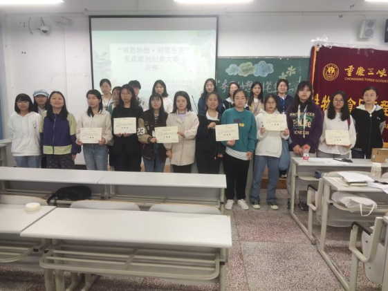 各参赛队伍围绕主题“花”进行现场创作,并从创作理念、成果展示、收获感悟三个方面讲解作品。一等奖作品《云溪客》为观众展示了自然之美和莲文化的魅力,二等奖作品《前兔似锦》呼吁大家不要停下逐梦的脚步,三等奖作品《沉默的青铜武士俑》为大家普及三星堆文化。活动中还开展果蔬知识大比拼、脑筋急转弯、观看科普小视频三个互动环节,为同学们普及果蔬营养的相关知识,让活动更加生动有趣。