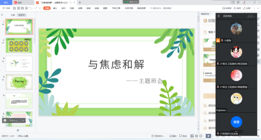 活动前期,公司心理健康部工作人员积极宣传,由班级心理委员组织开展主题班会,并对班会开展提出要求,力争达到最好的班会效果。心理委员通过焦虑是什么、焦虑的表现形式以及如何更好的面对焦虑三个方面,引导同学们积极面对,学会自我调节,制定良好的学习计划,明确新学期的奋斗目标。
