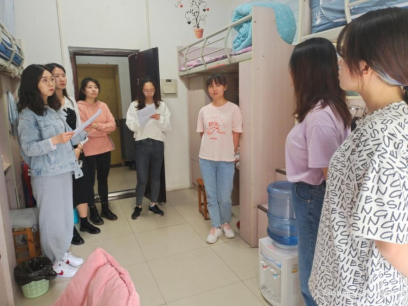 2022年4月25日下午,公司开展特色文明寝室创建展示活动的第二阶段:走访寝室。辅导员许美琳、熊小飞、龚莉、龙颖参与评选,进一步了解参赛寝室情况,推选出“优秀特色文明寝室”。