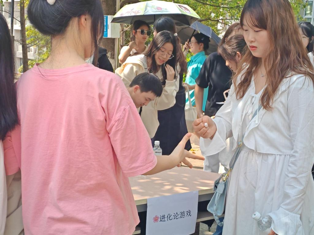 本次活动包括知识区、游戏区和手工区三个板块,共包含生物知识问答、春日诗歌拼接、进化论游戏、圆木画、植物拓染、浮游标本瓶制作和贺卡祝福传递七个关卡。参与者可自行选择感兴趣的关卡进行打卡,每完成一个关卡即可获得一次盖章打卡,高打卡完成度还能获得精美礼品。活动吸引了众多同学的参与,为校园增添了一抹春日的色彩。