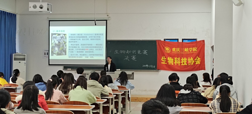 活动现场,选手以植物、动物为主题内容,自制精美的PPT,从珍贵的原始树栖濒危动物“考拉”到高大的植物活化石“银杏”,为大家展示了精彩纷呈的生物世界,同时引发同学们深入思考人与生物、人与自然的关系。