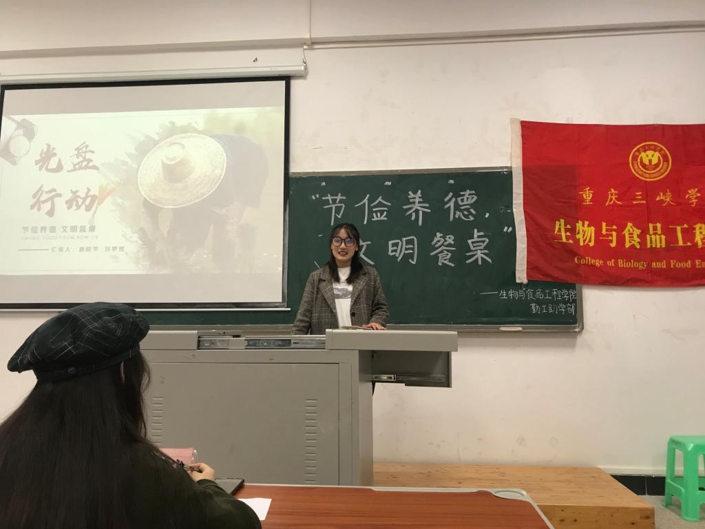 在线上征文比赛中,公司学子积极参与,以“厉行节约 反对浪费”为主题,写下自己的所思所感。10月31日18:00,公司在慎思楼4栋405举办 “俭以养德,文明餐桌”PPT演讲大赛决赛。比赛开始,选手们精心准备,从容上台,从 “餐桌礼仪”到“节俭之风”再到“居安思危”,每张PPT都引发同学们深刻思考。