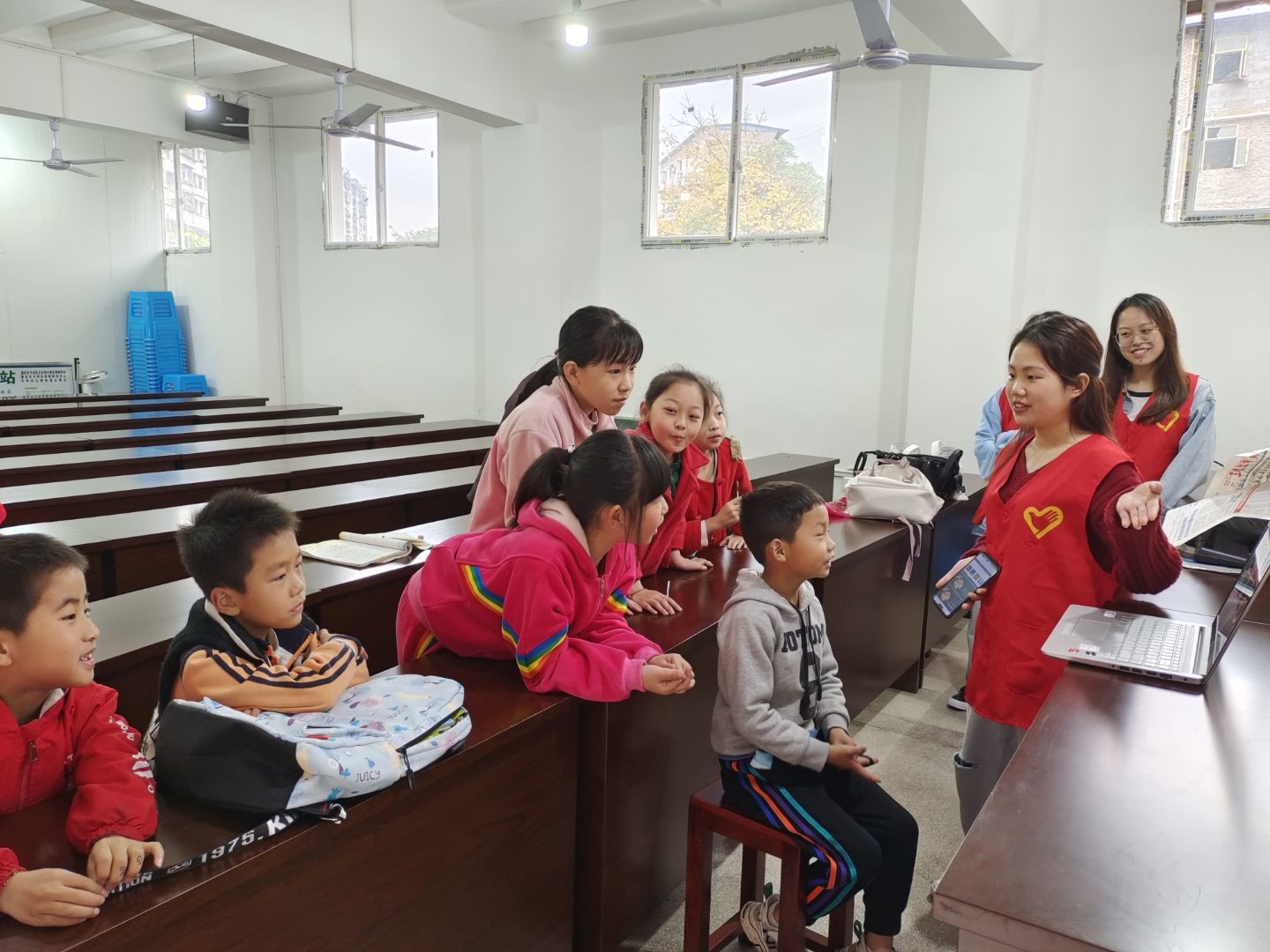 2021年4月每周日上午9:00-11:00,公司到五桥街道五间桥社区开展“青鸳课堂”活动,主要由公司员工志愿者为社区小朋友答疑解惑、培养课外兴趣。