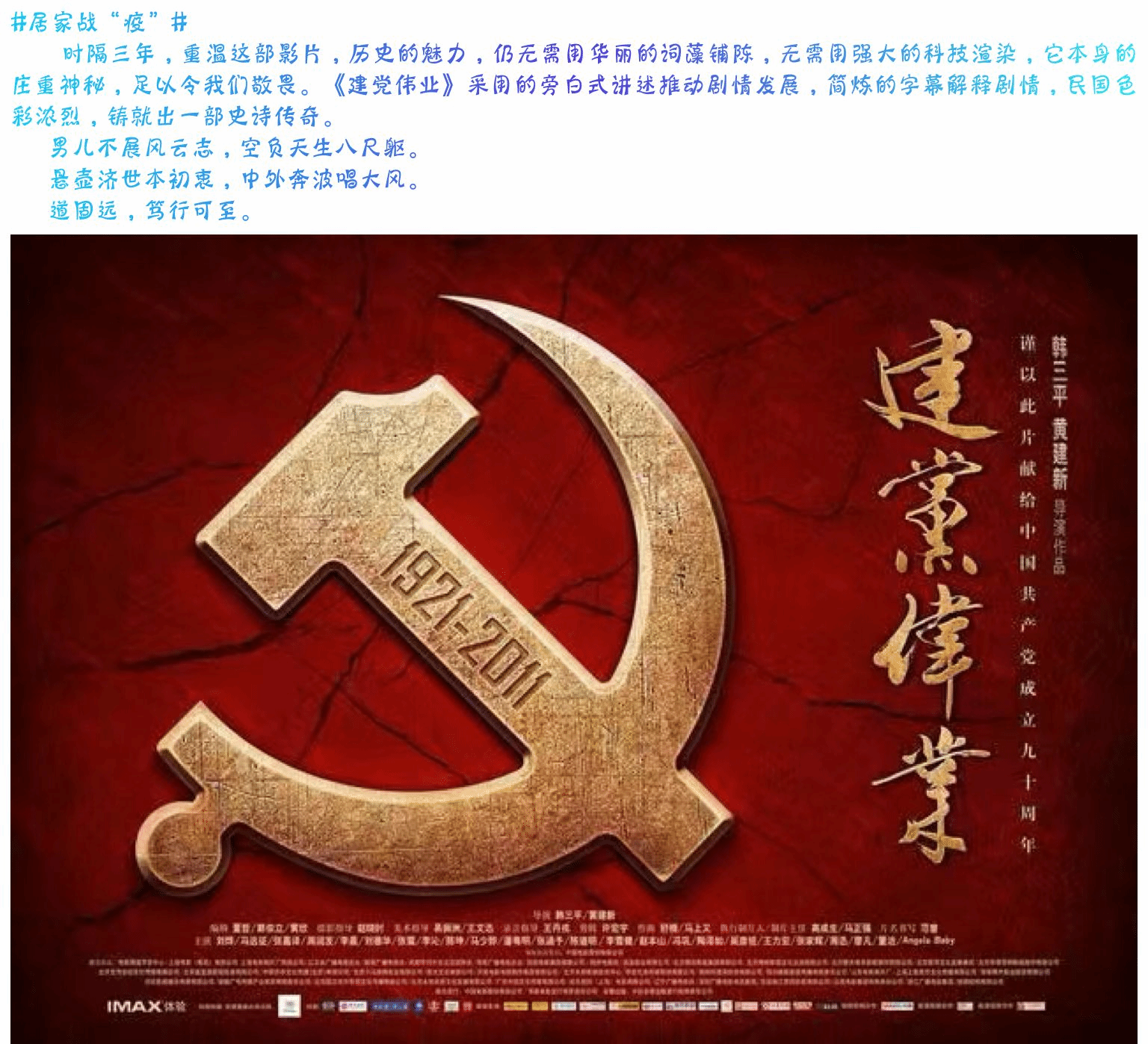 此次电影赏析打卡活动增强了同学们的民族自信心,排遣了同学们的学习压力。同时,同学们通过电影赏析有了新的感悟,提升了同学们的思想意识。希望同学们在今后的学习生活中继续保持积极乐观的心态,努力学习,不断前进。(生工公司 潘传青 李华林)