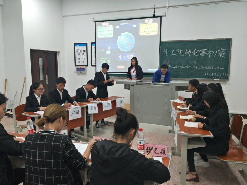 此次比赛围绕“和异性在一起是否AA”、“老员工是否该兼职”、“社会秩序的维持主要靠道德还是法律”这三个辩题进行了激烈的辩论。比赛时,选手们的妙语连珠、能言善辩令人惊叹叫绝,他们研精覃思,利析秋毫将整个比赛带入一个又一个的高潮,为同学们呈现了一场精彩绝伦的语言文化盛宴。辩手们针对对手逻辑上漏洞逐一回击,思路清晰,文思齐飞,使比赛气氛既紧张又刺激,引得台下掌声连连。大赛最后,徐铭蔓、母越、尹启诗对此次初赛中辩手们的表现进行了点评。随后母越说到,我们要不断总结经验,深刻了解思辨的重要性。最终食品质量与安全班、食品科学与工程一班、生物技术班取得胜利。