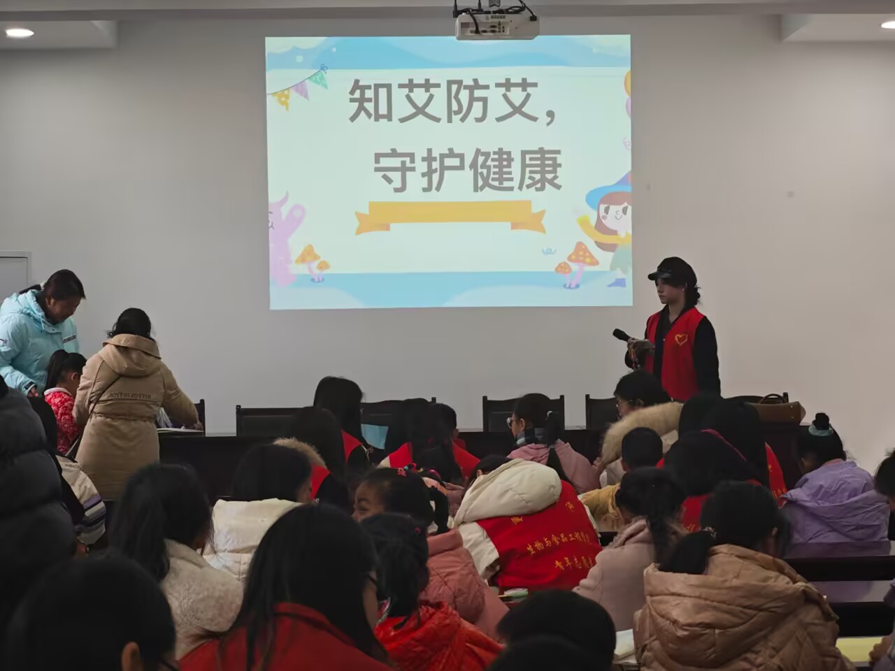 活动现场温馨和谐,志愿者以PPT讲解的形式,从艾滋病的基本概念、传播途径、预防措施到国家的相关政策与法律法规,志愿者们以生动形象的图片、简洁明了的语言,将复杂的专业知识转化为孩子们易于接受的信息,让孩子们在轻松愉快的氛围中,对艾滋病有了更全面、更科学的认识。