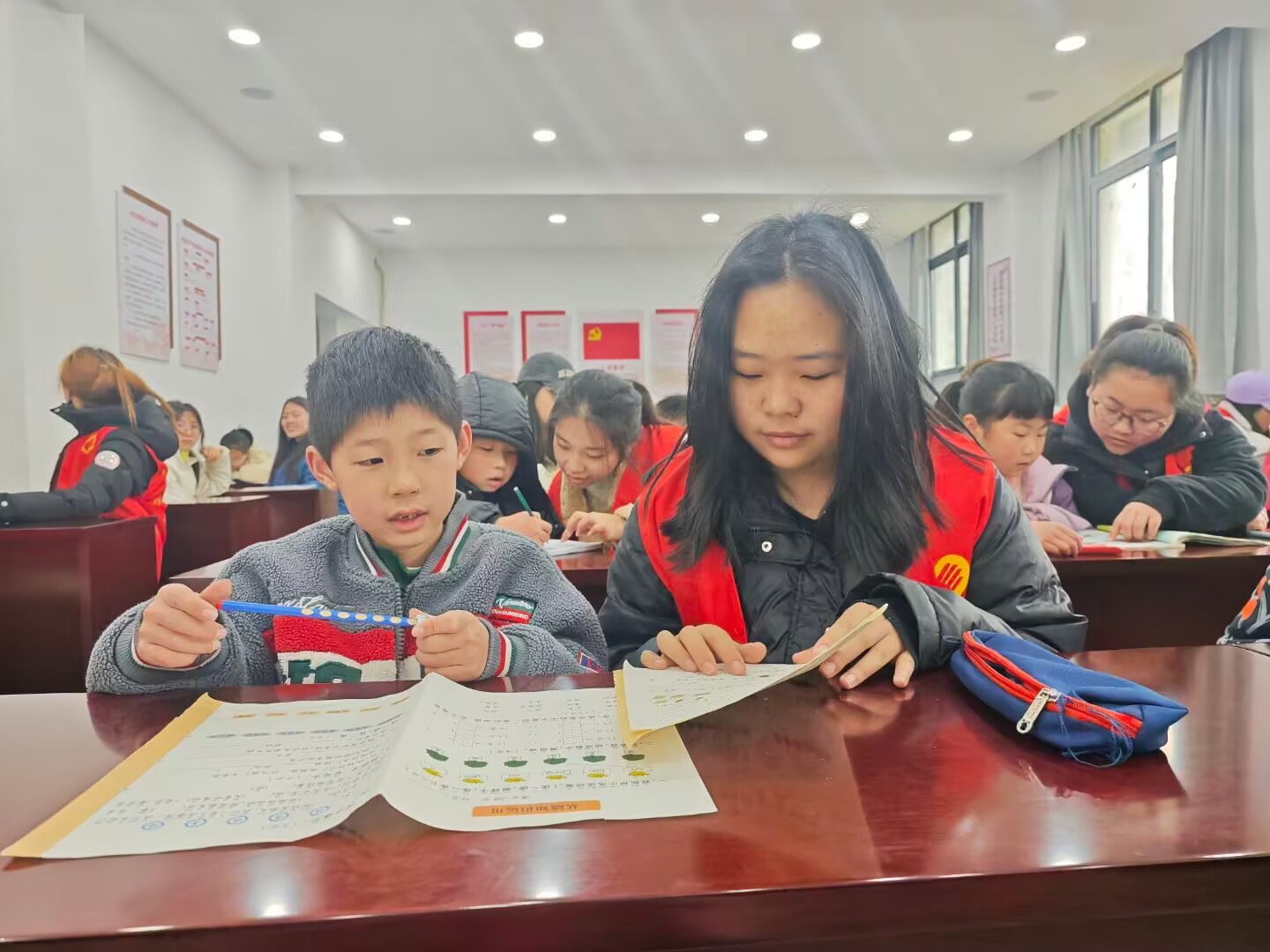 在本次活动中,志愿者们耐心细致地解答了小朋友们学习中的疑惑,帮助他们巩固课堂知识、拓展课外知识,不仅有效提升了小朋友的学业水平,更在他们心中埋下了红色精神的种子。志愿者们通过精心制作的PPT,用简单易懂的语言和生动形象的图片和视频,向小朋友们讲述了多位先烈,从放牛娃王二小智引敌人到最小烈士“小萝卜头”监狱传递消息,小朋友们听得津津有味,眼里满是对小烈士的敬佩。