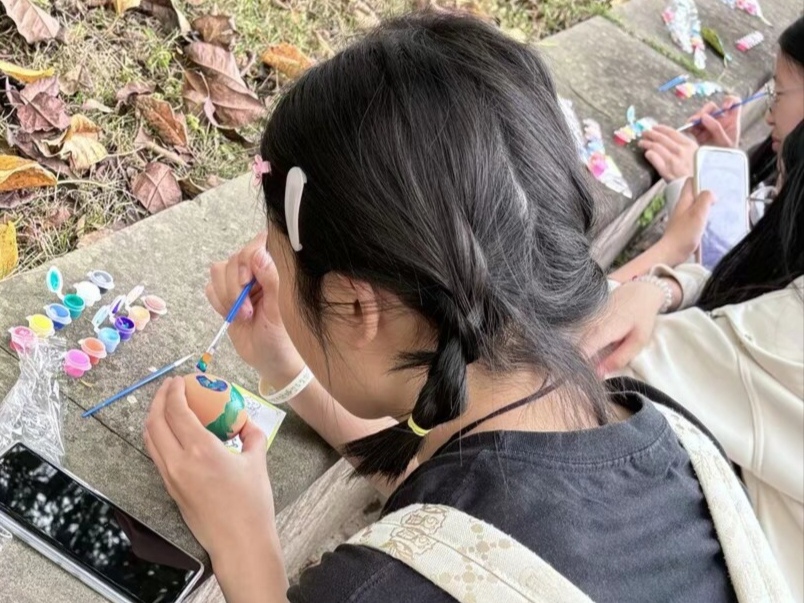 活动设置了六个环节:“踢蹴鞠”还原古代清明体育活动,强调团队协作与文化传承;“识香囊”通过嗅觉辨识传递驱邪避疫的传统文化寓意;“圈美食”结合清明特色食品道具,以套圈形式引导参与者了解节日饮食习俗;“常识答题”普及清明节相关知识,增强文化认知;“留言互动”搭建情感表达平台,收集参与者的节日感悟;“画鸡蛋”激发了参与者的艺术创造力。活动全程井然有序,工作人员积极为参与者答疑解惑。活动结束后,协会工作人员合影留念,随后有序整理场地、清点物资,归还物品。