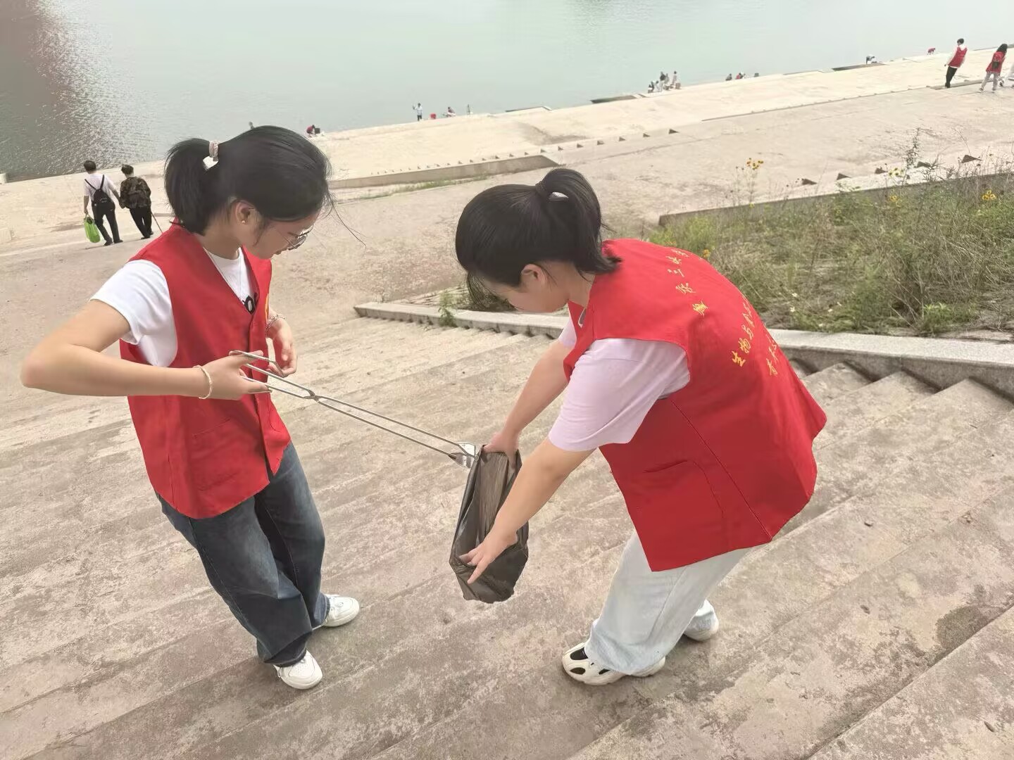活动当天,志愿者们两人一组展开清理工作。其中一人使用长柄夹捡拾河岸垃圾,另一人负责用垃圾袋收集。饮料瓶、包装袋、烟蒂等各类垃圾被逐一清理。志愿者们克服脏污环境,顺利完成清理任务,展现了青年志愿者的责任担当。