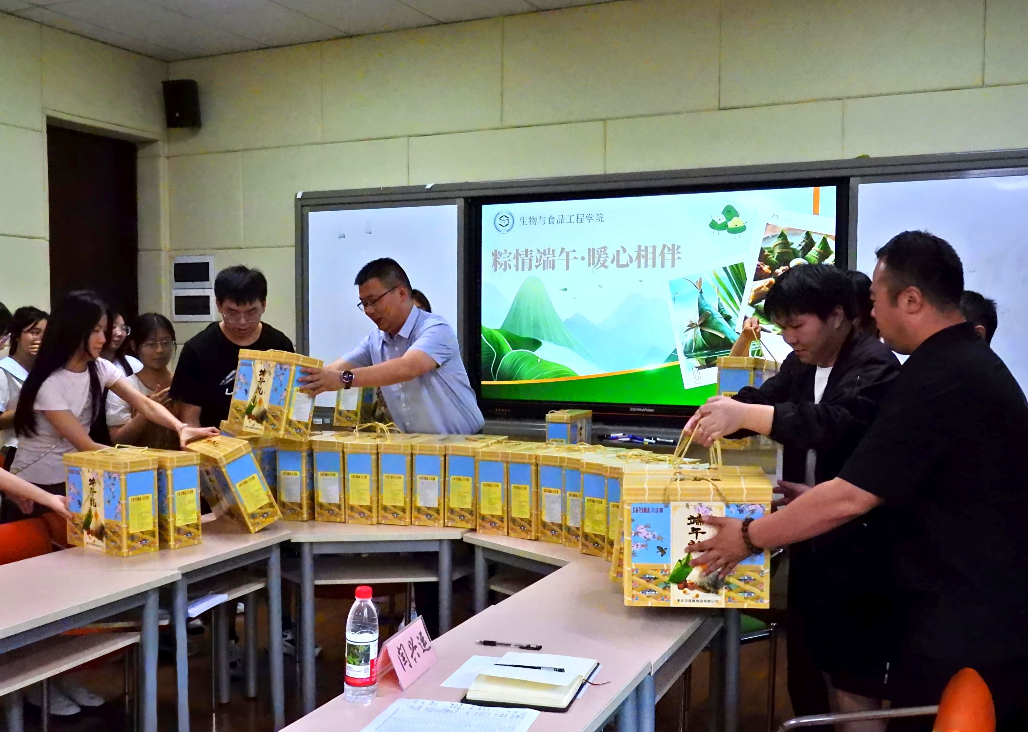 座谈会上,与会领导与同学们进行了亲切交流,围绕学业进展、科研探索、实习实践、生活适应等方面进行了深入沟通。院领导们认真倾听同学们的心声与困惑,结合自身阅历给予指导和建议。交流环节结束后,院领导们向与会员工发放了精心准备的节日粽子,并送上诚挚的端午祝福。