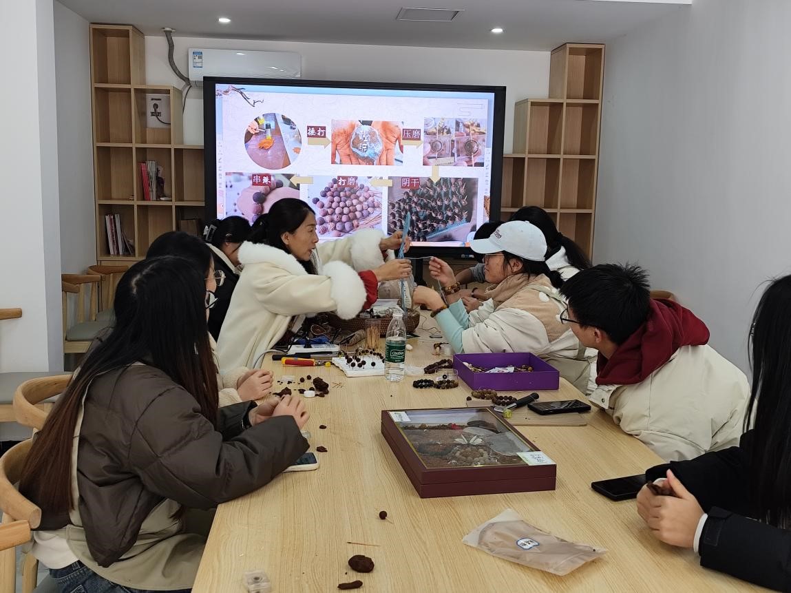活动中,甘老师首先向同学们介绍了合香的历史渊源与文化内涵,随后带领大家亲手制作合香珠与合香梳。从香料的辨识、研磨到配伍、成型,同学们在细致的实践中感受古人“和香”的智慧与匠心。现场香气清雅,气氛专注而温馨。参与同学纷纷表示,通过动手实操,不仅学习了一项传统技艺,更对中华香文化中“天人合一”的哲学理念有了切身体悟。活动在淡淡的馨香与欢声笑语中圆满结束。