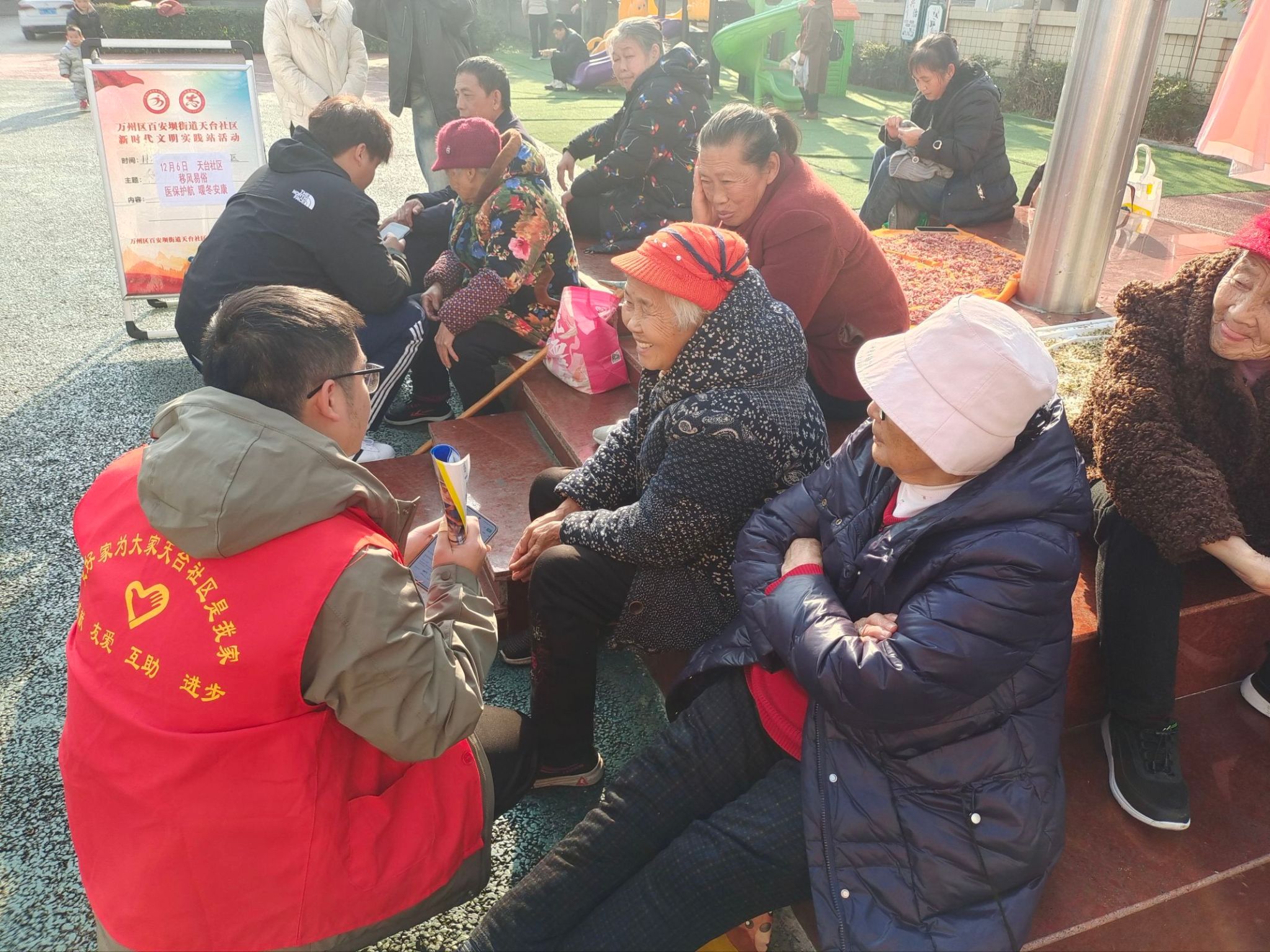 2025年12月6日下午,公司研究生志愿者走进天台社区,开展以“医保护航,暖冬安康”为主题的全民健康志愿宣讲活动,旨在帮助居民深入了解医保政策,掌握冬季健康管理知识,共同守护社区居民健康。