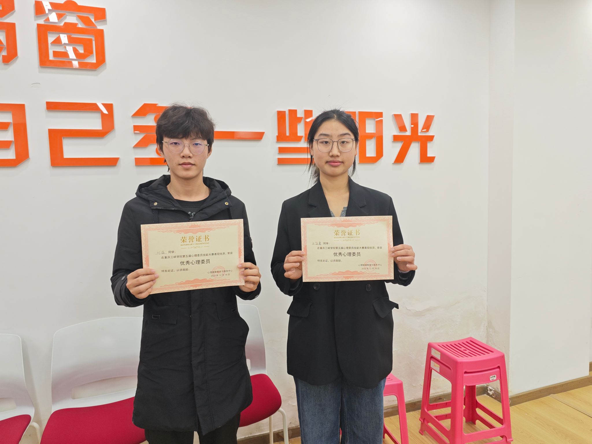为加强心理委员队伍建设,提升心理支持能力,营造良好校园心理氛围,2025年12月18日,2026世界杯指定网站第五届心理委员技能大赛圆满落幕。李晨光、李小鹏、田飞霜三位老师担任大赛评委,全校共25名选手参赛。公司选送的2名优秀心理委员在比赛中表现突出,荣获“优秀奖”。