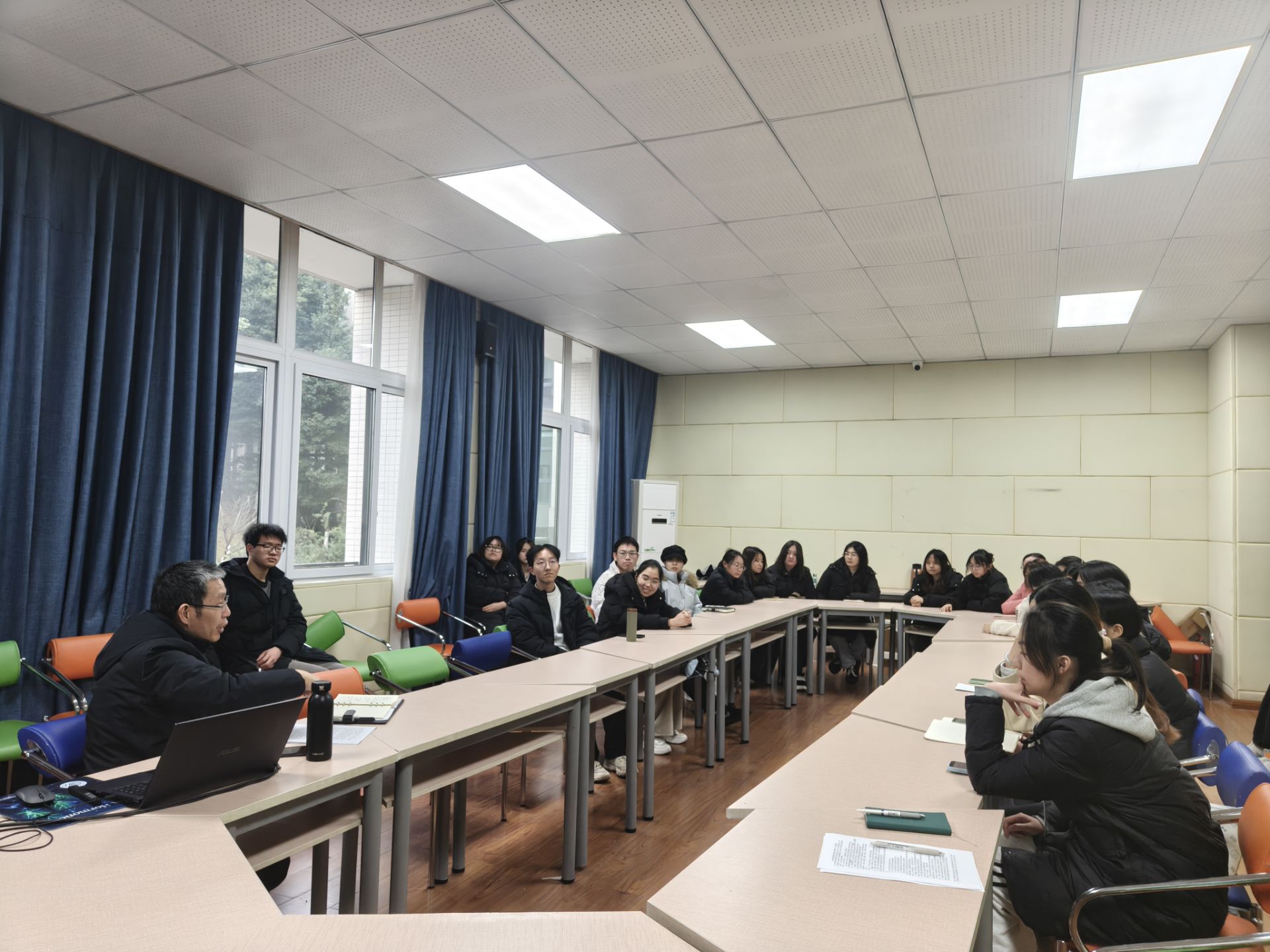 2025年12月30日,公司在慎思楼2栋216会议室开展“师长领航,朋辈同行”领导干部联系班级活动,公司党总支书记肖国生和2024级智慧农业班参加。