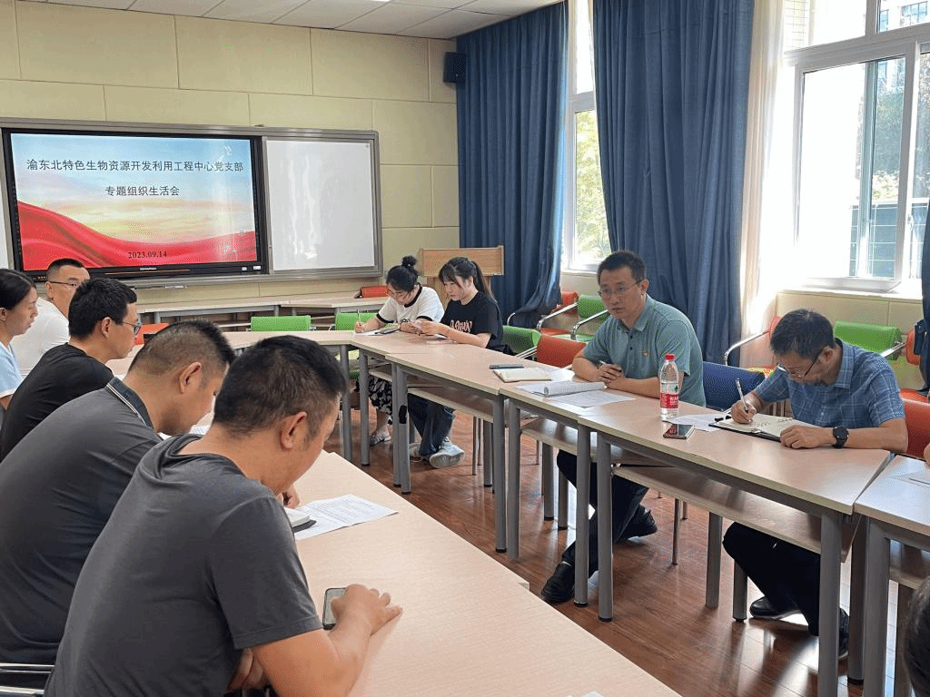 2023年9月14日下午,渝东北特色生物资源开发利用工程中心党支部在慎思楼2栋216室召开专题组织生活会,会议由党支部书记赵峰主持,支部全体在公司党员参加。