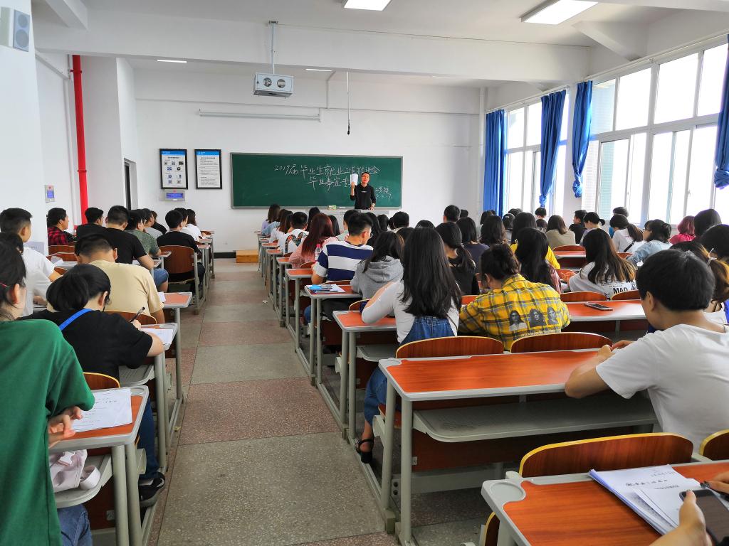 5月17日,公司在慎思楼4栋416召开2019届毕业生就业工作推进会。参与本次会议的是2015级食品科学与工程班和2015级生物技术班全体同学,学工办副主任李华林在会议上作了讲话。