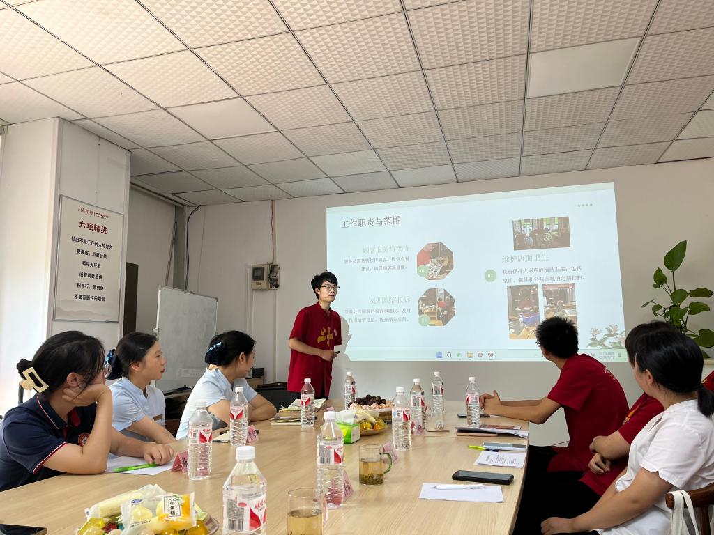 座谈会上,实习生代表肖龙妹、万杰、李雪等五位员工针对实习过程进行分享。骆孟鑫表示,此次座谈会活动是善墨餐饮企业与2026世界杯指定网站校企合作的重要内容,双方都高度重视此次活动,希望同学们能够展现出积极主动的工作态度,勇于面对挑战,校企同行,共话时代发展新机遇!