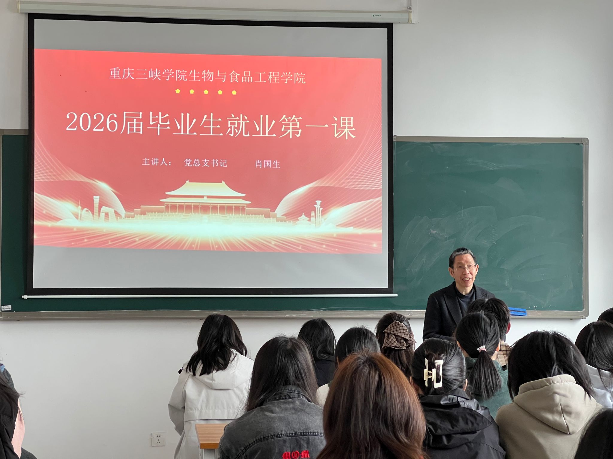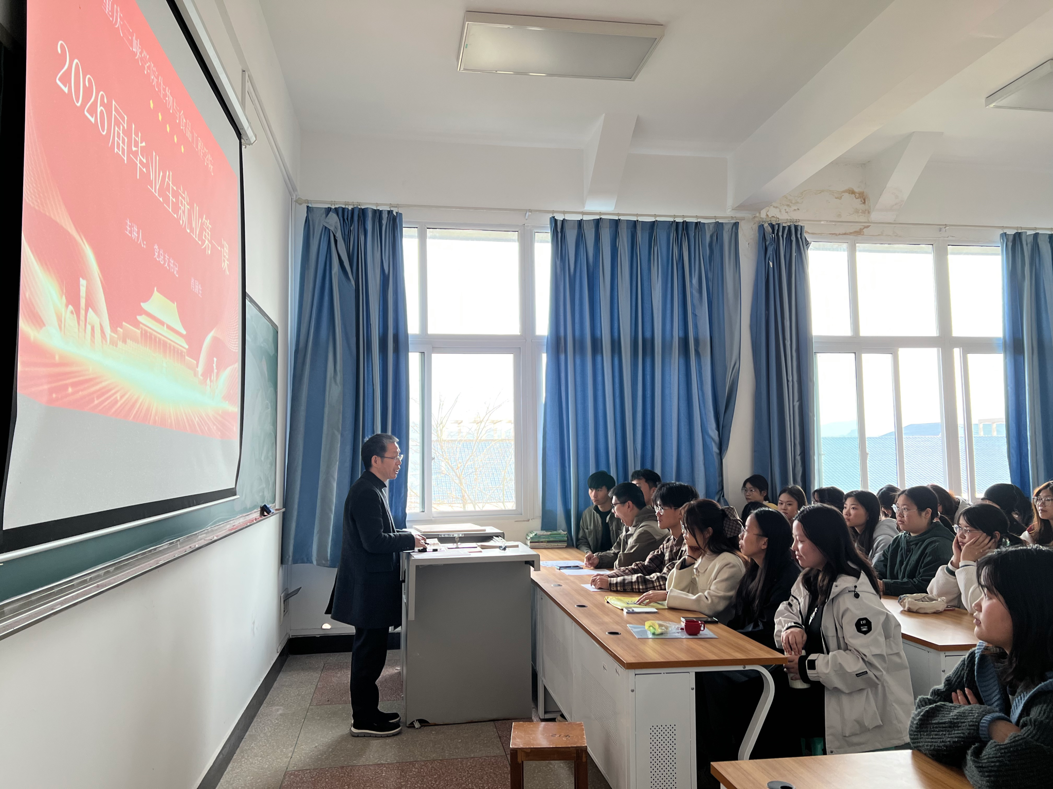 为引导毕业生认清就业形势、树立正确择业观念,3月13日,公司党总支书记肖国生在慎思楼2栋411教室为2026届毕业生讲授“就业第一课”。